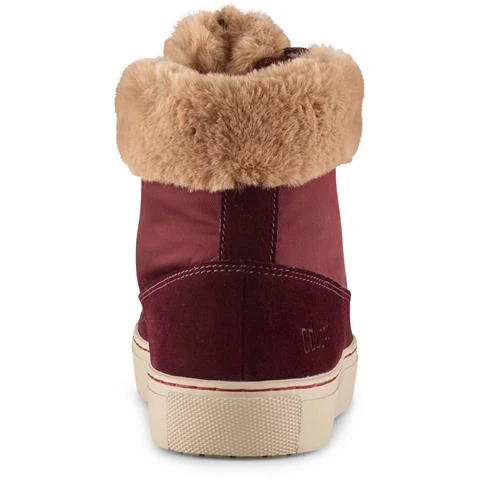 Ankle-high suede and nylon sneaker. Round toe. Faux Lapin fur collar. Zip closure at outer side with lace front. Tonal hardware and stitching. Rubber outsole.