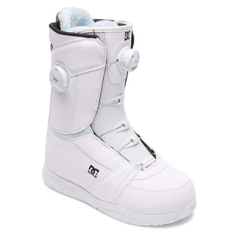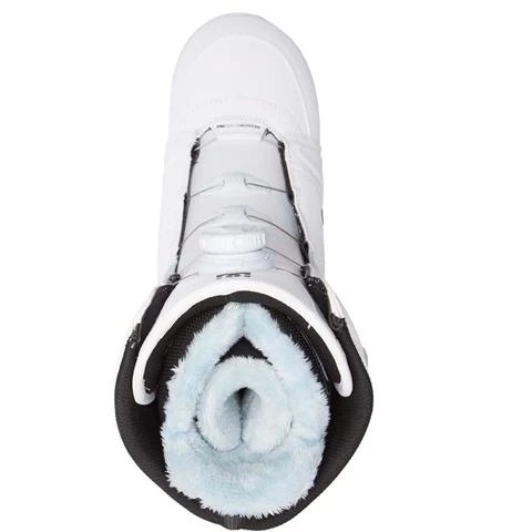 The 2023 Women’s DC Lotus Snowboard Boots offer a smooth monochromatic look. Choose between a soft chocolate brown and a striking white boot. Both options have a white faux fur lining for added comfort and style.