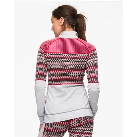 Kari Traa Silja Half-Zip – 622909The Kari Traa Silja Half-Zip is a premium 100% Merino wool women’s baselayer top that gives you a feeling of warmth and Scandinavian tradition. It’s ooh-factor soft on the skin, breathable and naturally odor-resistant. Zip the high collar up into the chin guard if the wind threatens your snug. The subtle range of colors are all offset with a touch of Nordic-inspired class around the chest and upper arm.