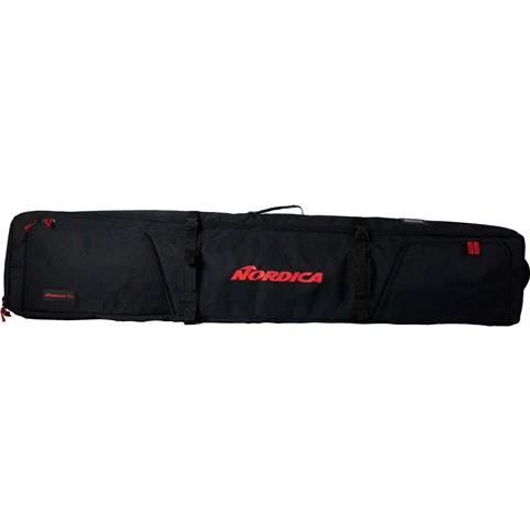 2pr Ski Bag, Fully Padded, Padded Divider, Internal Cinch Straps, 2 External Pockets, External Cinch Straps with handles.