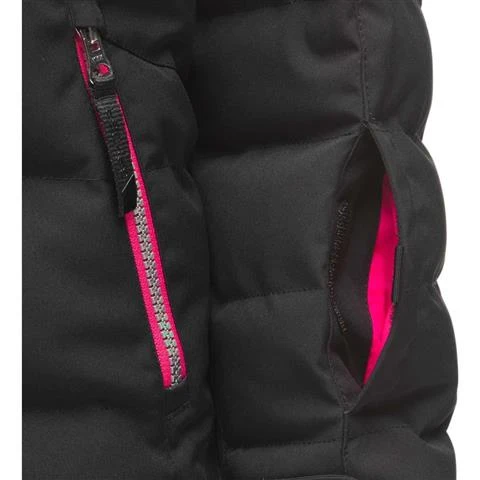 Combining synthetic down insulation with recycled Repreve™ polyester outer, the Zadie is optimized to keep girls warm and dry when mountain weather moves in and temperatures drop. A 10k/10k laminate with additional DWR creates weatherproof protection and synthetic down traps warmth. A removeable hood with detachable faux fur and hologram Vislon® zippers are the SPYDER extras that will pop on the podium.